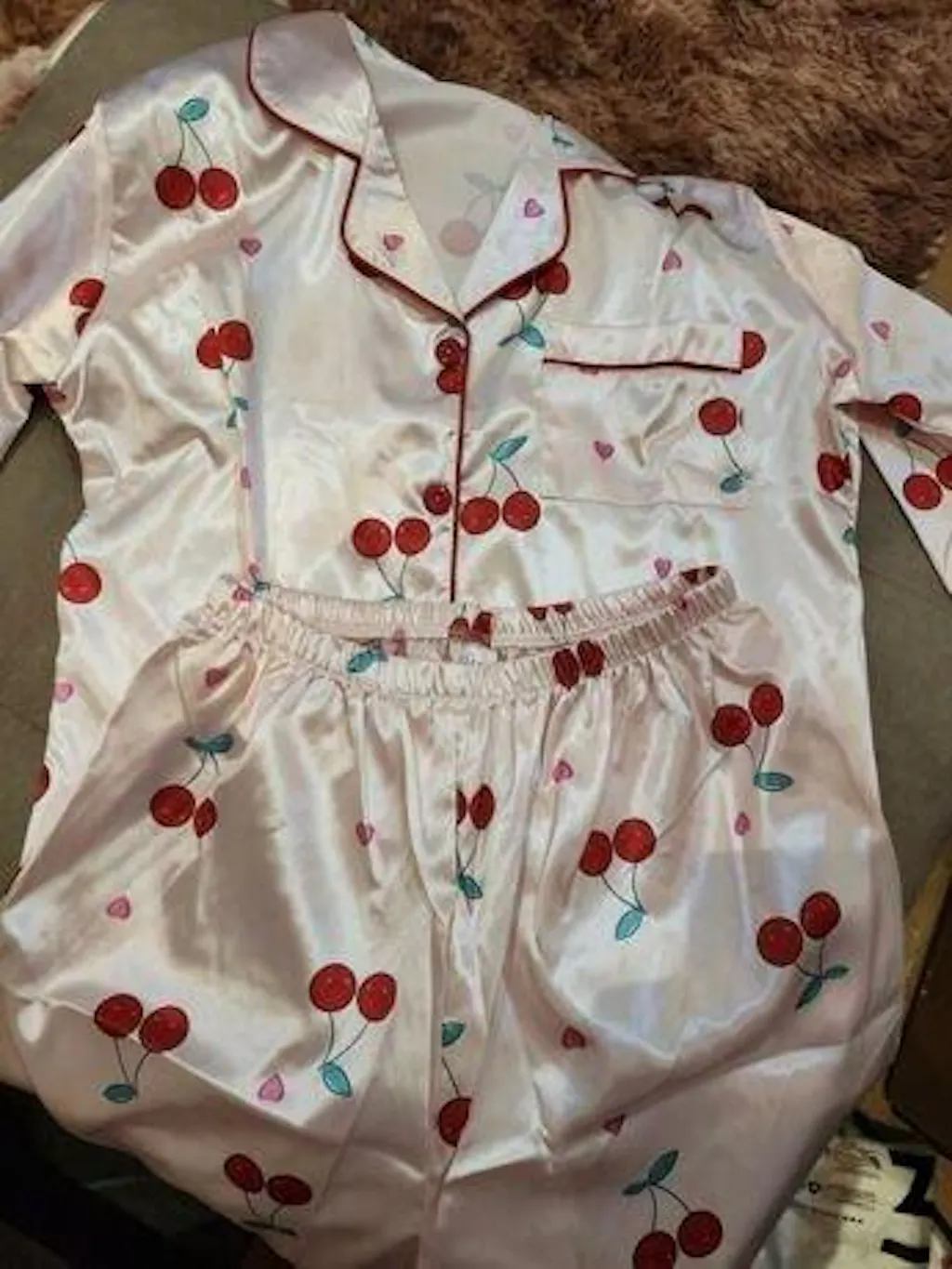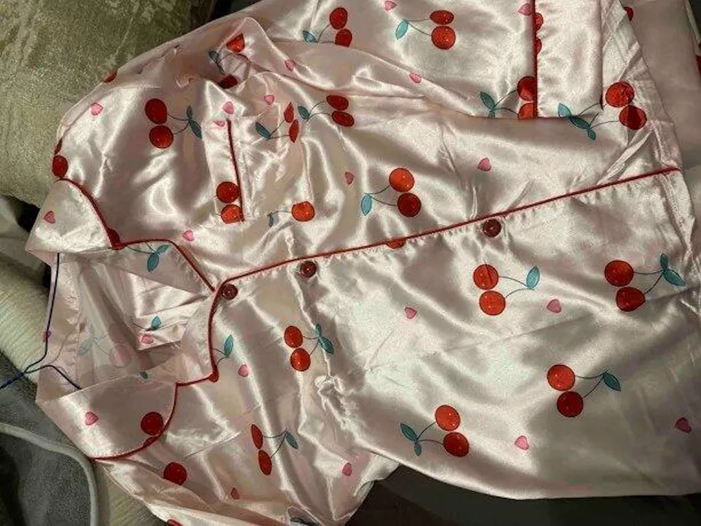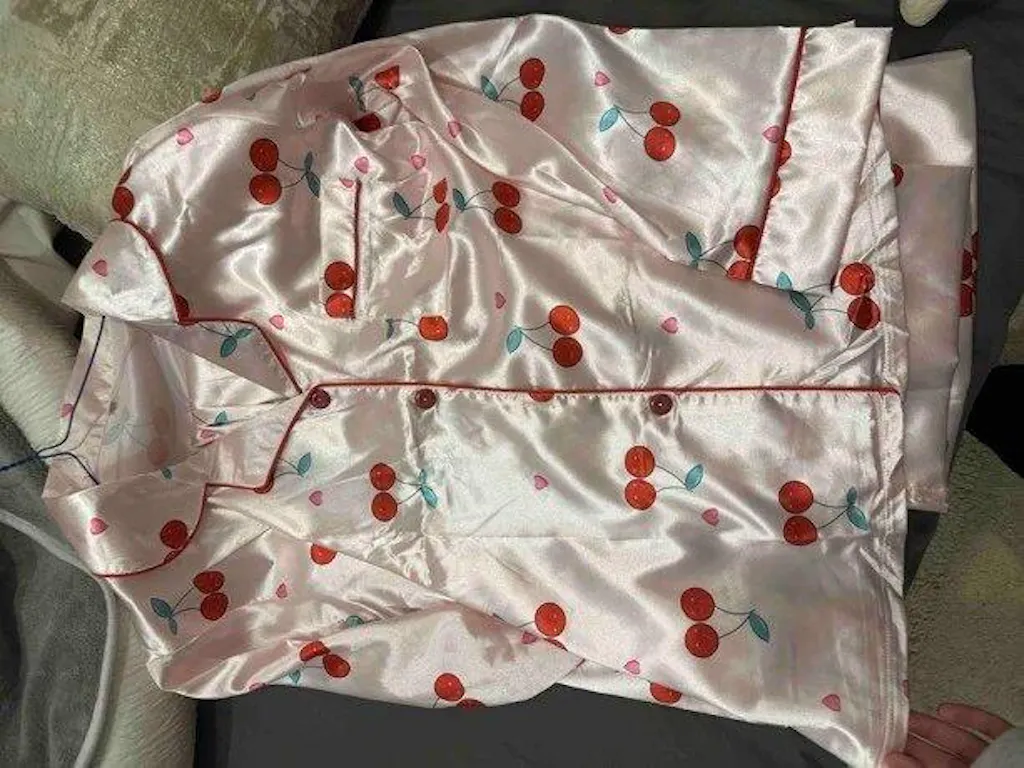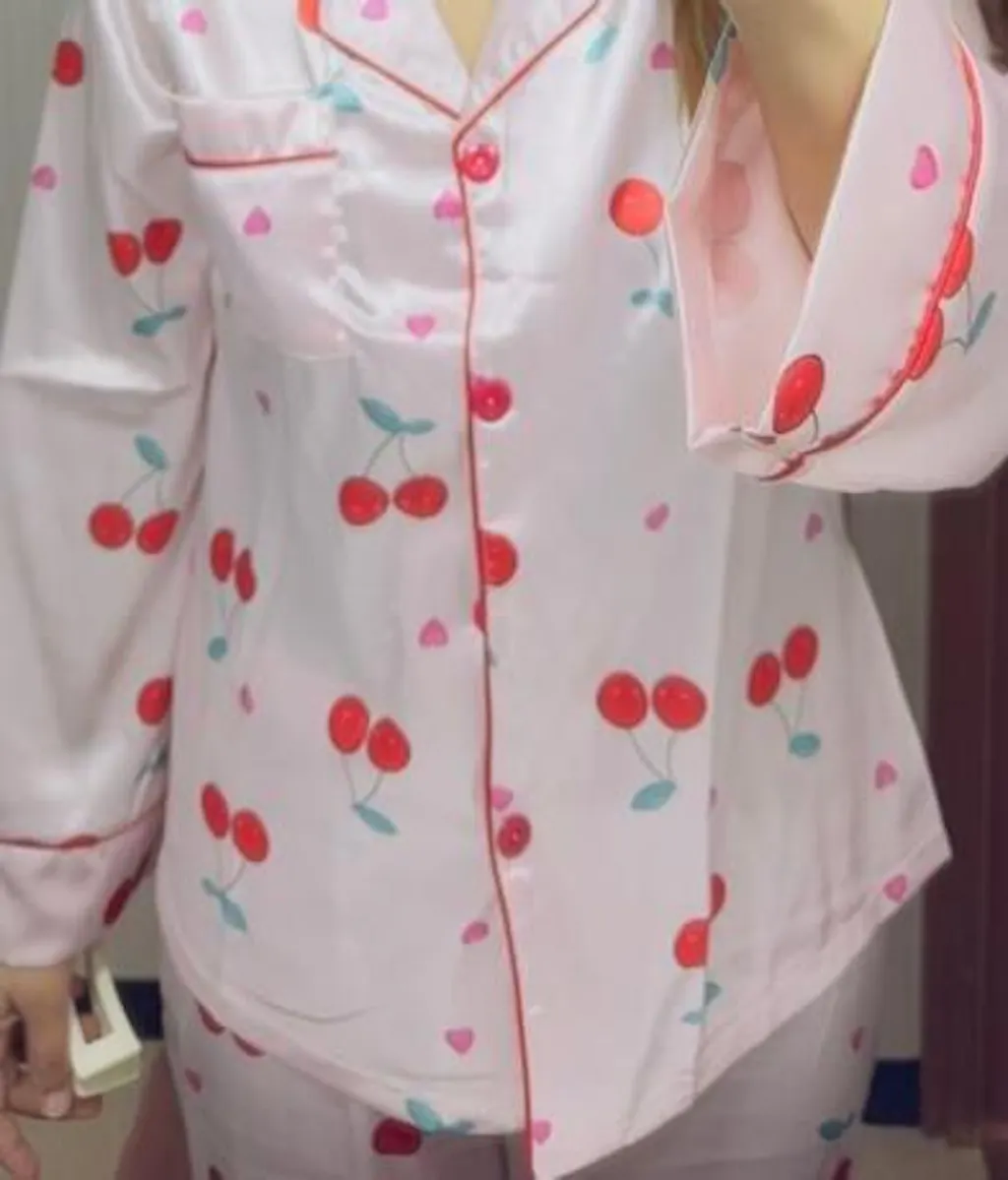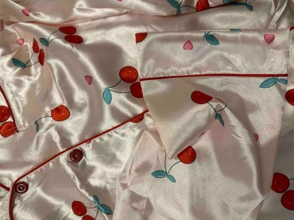 Red Cherry Printed Nightsuit Set For Women